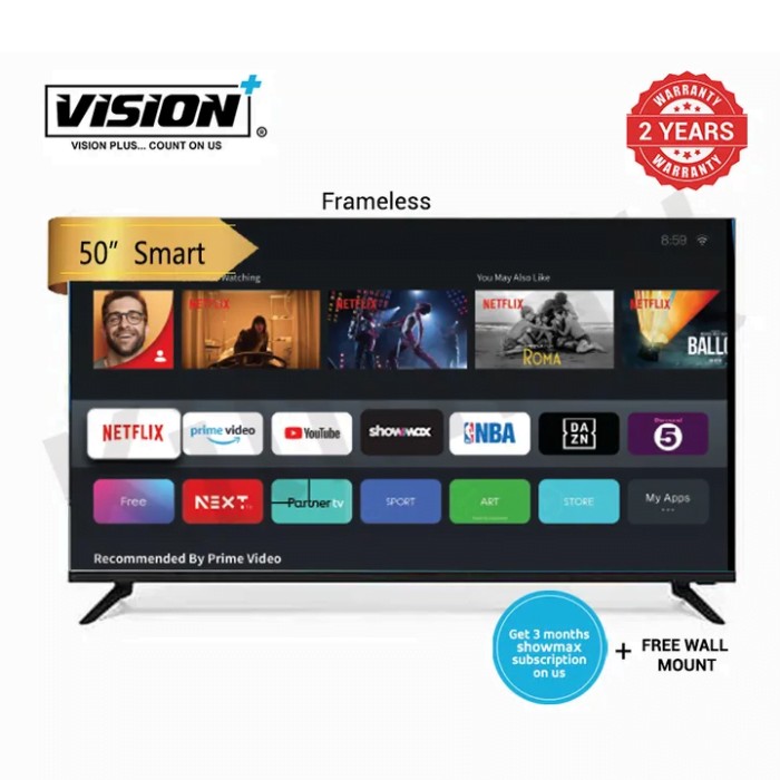 Upgrade your home entertainment with the Vision Plus 50″ Vidaa 4K TV, a perfect combination of stunning visuals and intelligent features. This 50 inch marvel delivers crystal-clear 4K UHD resolution, vibrant colors, and deep contrast, turning every movie, game, or sports match into a cinematic experience. With Vidaa OS, enjoy instant access to Netflix, YouTube, Showmax, and thousands of apps and games, all optimized for smooth performance.